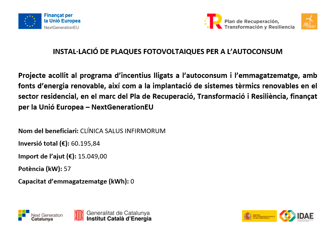 En el marco del conjunto de acciones destinadas a reducir el gasto eléctrico y para contribuir a la conservación del medio ambiente, en los tejados del edificio principal de la Clínica Salus Infirmorum, del edificio adyacente al principal y de la iglesia se han instalado placas solares que ya funcionan a pleno rendimiento.